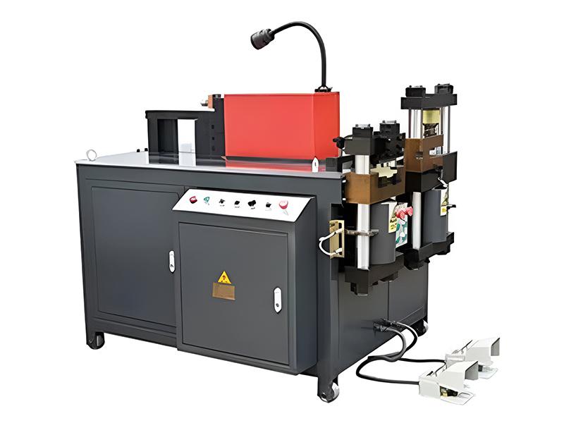 此圖為新一能配電柜車間的母排加工機(是一種主要使用沖孔、切斷、折彎三個加工單元,通過手動操作或腳踏開關,可單獨或同時對母線進行沖孔、切斷、折彎的設備機械,在配電柜生產過程中起到一定作用。